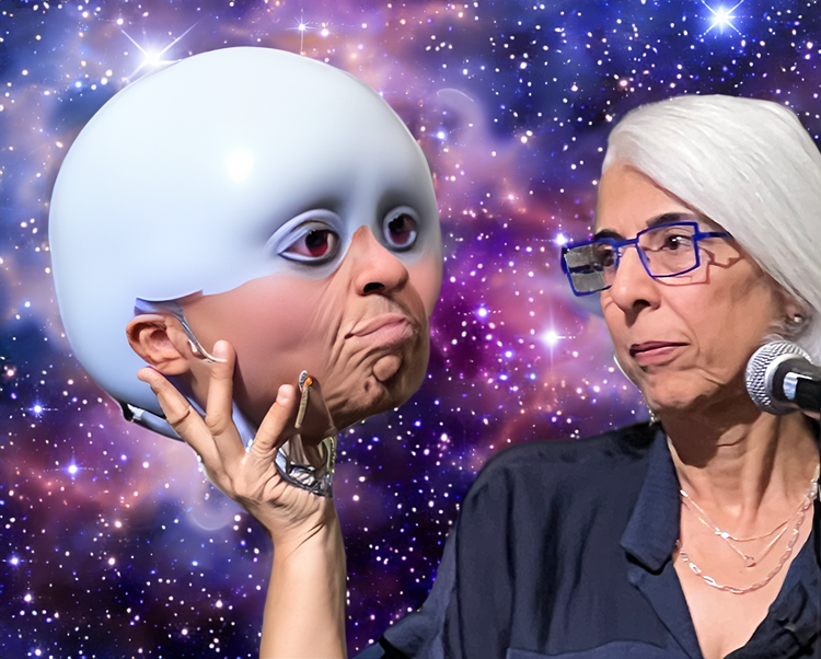 As a final teaser for our DefCon chronicles, check out my Ai enhanced photo of Arati Prabhakar, whose official title is Director of the Office of Science and Technology. She is a close advisor of the President and member of the Cabinet. Yes, that means she has seen all of the still top secret UFO files. In her position, and with her long DOD history, she knows as much as anyone in the world about the very real dangers posed by ongoing cyber-attacks and the seemingly MAD race to weaponize AI. Yet, somehow, she keeps smiling and portrays an aura of restrained confidence, albeit she did seem somewhat skeptical at times of her bizarre surroundings at DefCon, and who knows what other sights she has been privy too. Some of the questions she was asked about AI did seem strange and alien to me.
