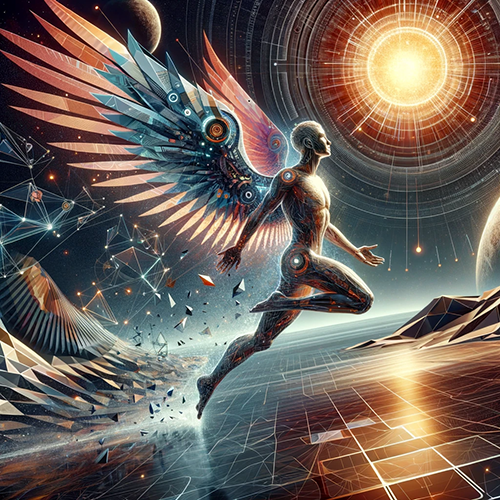 This alternative is inspired by Plato and his Allegory of the Cave, where he prompts Socrates to chat about a prisoner stuck his whole life in a cave. In this cave everyone mistakes for reality the shadows on the wall cast by a small fire. The cave in my mixed retelling represents limited human intelligence, unaugmented by AI superintelligence. Eventually, one person is able to escape the cave, here that is Icarus, and he is illuminated by the light of the Sun. He attains freedom and gains previously unimaginable insights into reality. He links with superintelligence. It is bravery, not hubris, to seek the highest goals of intellectual freedom.