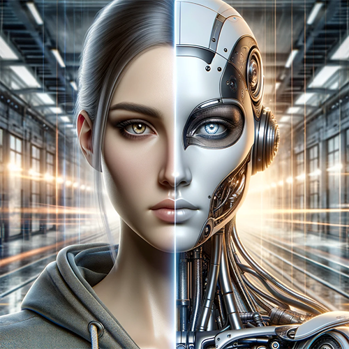 Gemini AI and Human image by Losey combining realistic and futuristic styles using his Visual Muse.